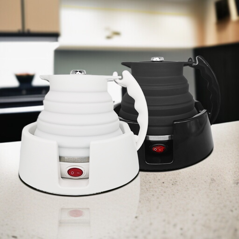 Hervidor eléctrico plegable para coche, portátil y ligero, apto para 12V y 24V, ideal para viajes. Diseño compacto, fácil de guardar y usar en carretera.